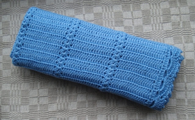 Sky Blue Baby blanket crocheted from 100% merino wool. This baby blanket is must have for layette. It would make a beautiful shower gift, and would be ideal to use for a Blessing, Baptism or Christening, as well as everyday use at home and for travel - in car seat, stroller/ pram, crib/ cot etc.