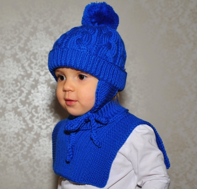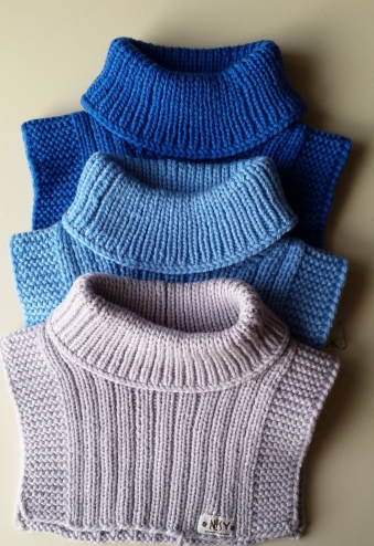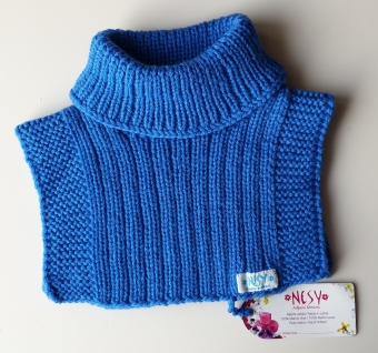 Hand knitted neck warmer for baby, toddler, boys and girls. Made from 100% merino wool in blue color