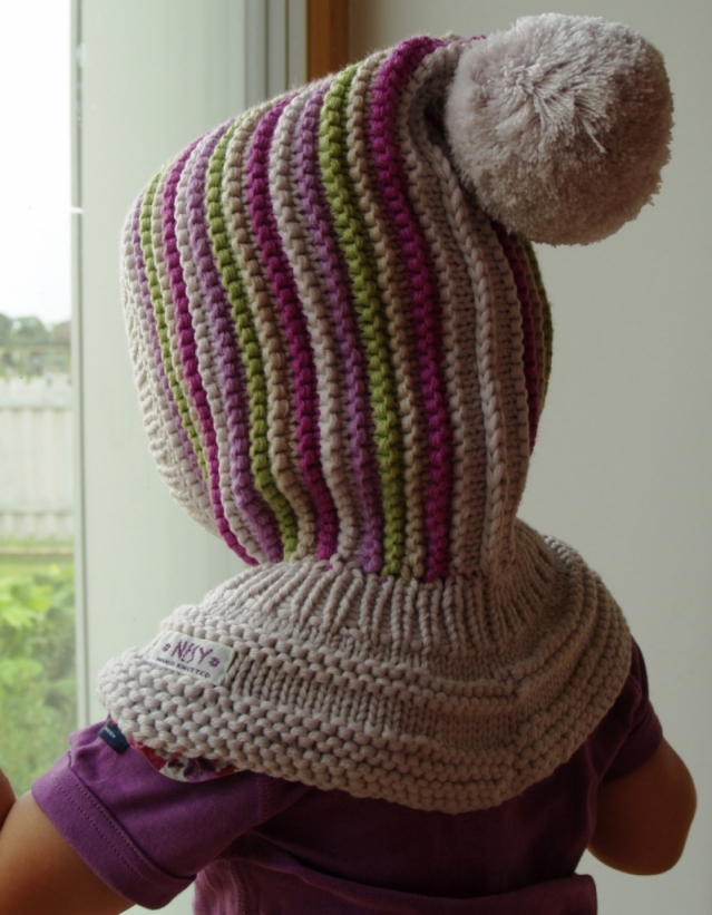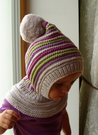 Tonis: pelēks ar gaiši violetām, violetām un salātu zaļām svītriņām (Grey with orchid purple, purple and salad green stripes)